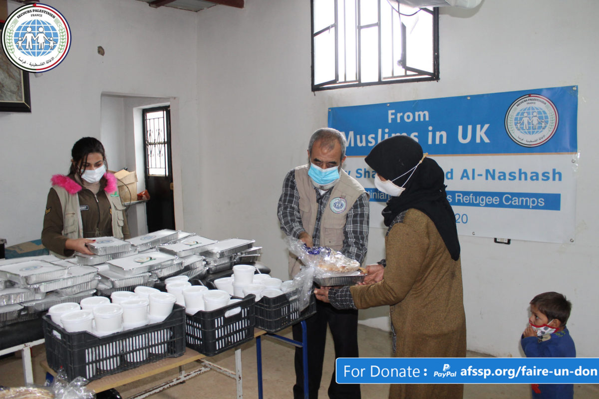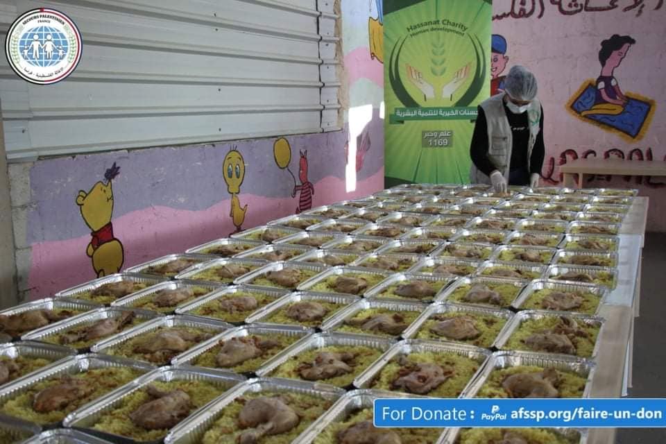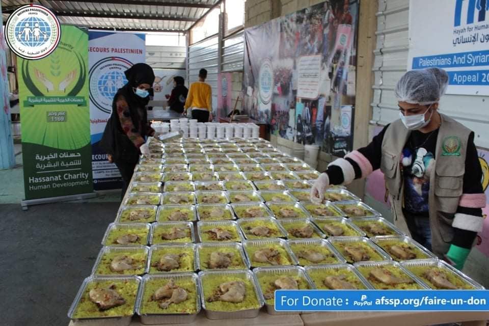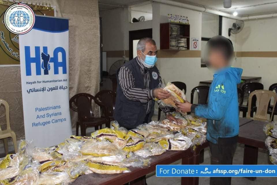 Hasnat Charitable for Human Development, funded by the Palestinian Relief-France and Hayat for Humanitarian Aid, prepared and distributed hot meals and charitable loaves as part of the (Take the Hands Campaign 2020), in Ain El-Helweh camp for Palestinian refugees, and in the centers of Syrian displaced communities, in In light of a crisis economic reality