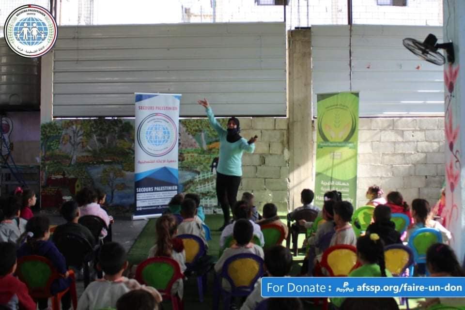 The Palestinian Relief Center received a delegation from the health committee in the camp, where the committee distributed masks to the children of the Basma Kindergarten of the Palestinian Relief, after which the delegation met with the workers of the association to talk about the seriousness of the Corona virus, its rapid spread, and ways