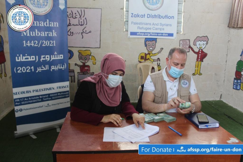 Palestinian Relief France distributed zakat money and monthly guarantees for orphans as part of the Spring of Good 2021 campaign, to hundreds of families with extreme hardship in the Ein El-Helweh Palestinian refugee camp to meet the necessary needs and requirements, especially with the advent of the blessed Eid al-Fitr.