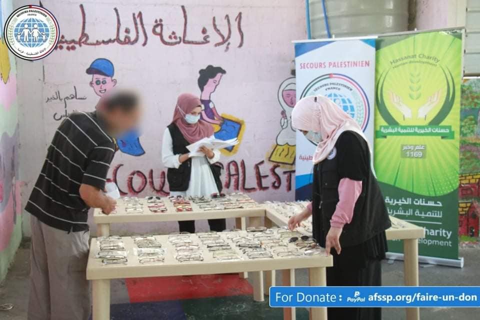 Filistin Yardımlaşma Derneği, Eller Serbest 2020 kampanyasının bir parçası olarak, zor yaşam koşulları ve trajik ekonomik koşullar ışığında, üyeleri görme bozukluğu sorunları olan birçok aileye ve ailelere arka arkaya dördüncü hafta “tıbbi lastikler” dağıtmaya devam ediyor.